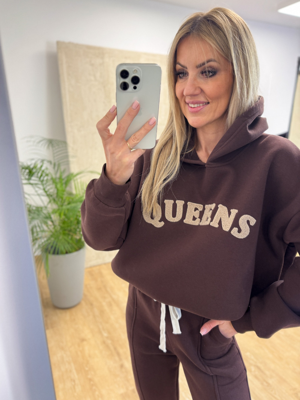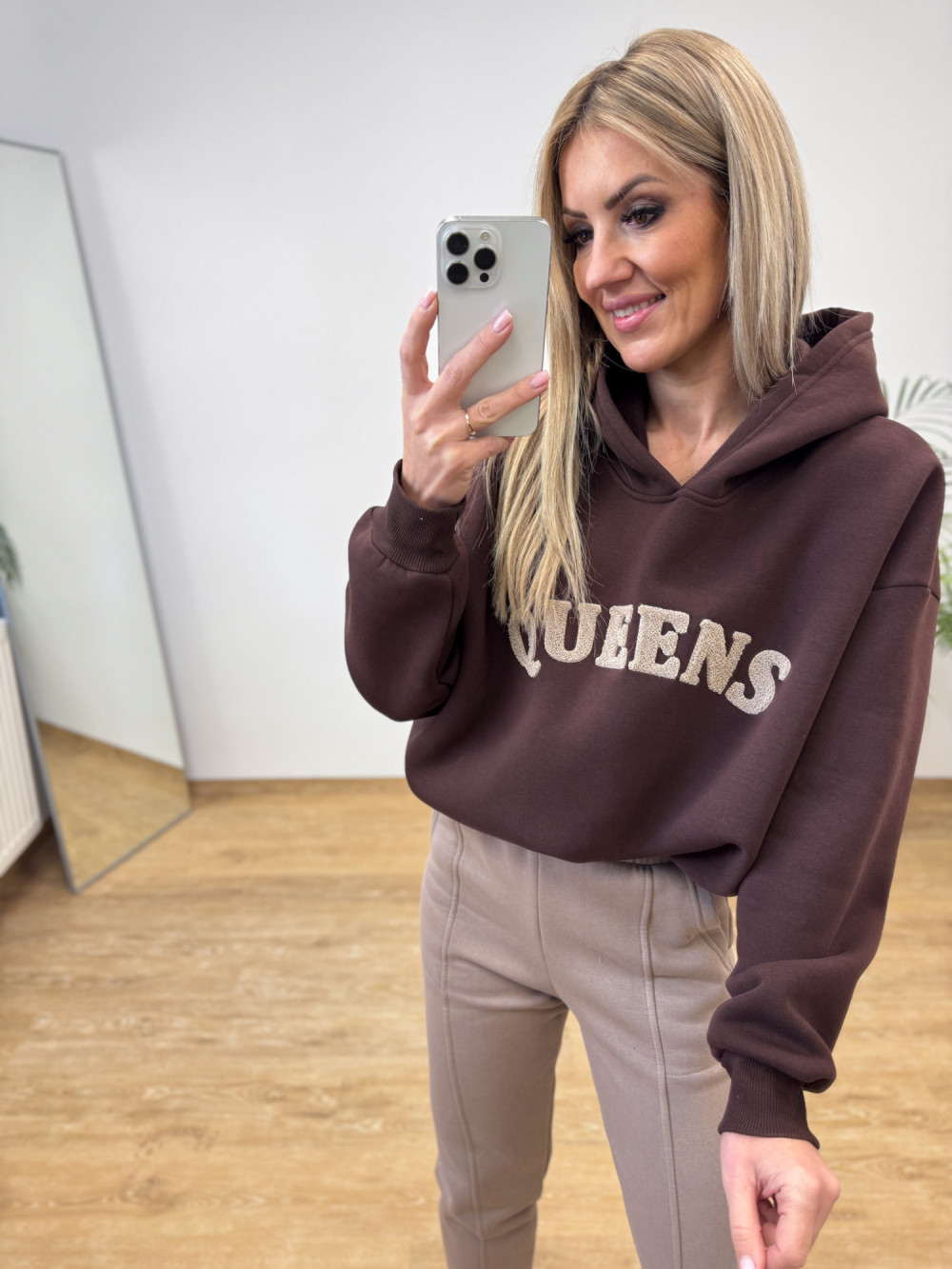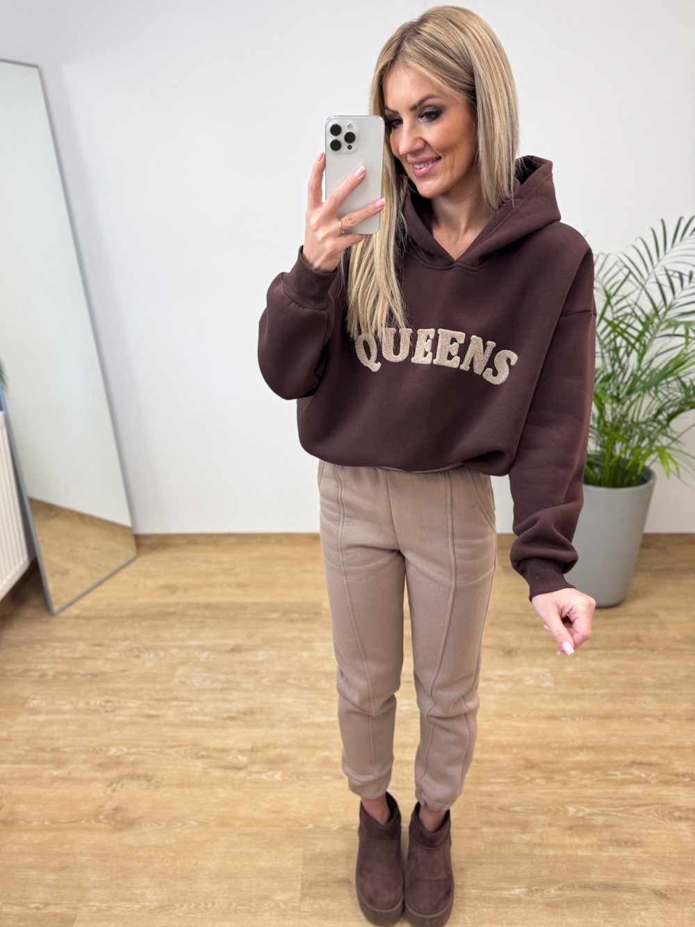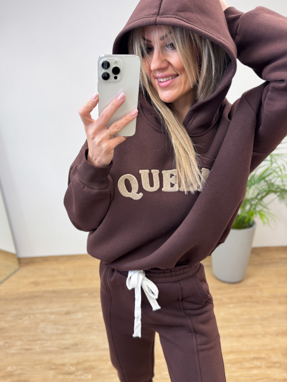 Komplet Dresowy Ocieplany Bawełniany Queens - Czekoladowy