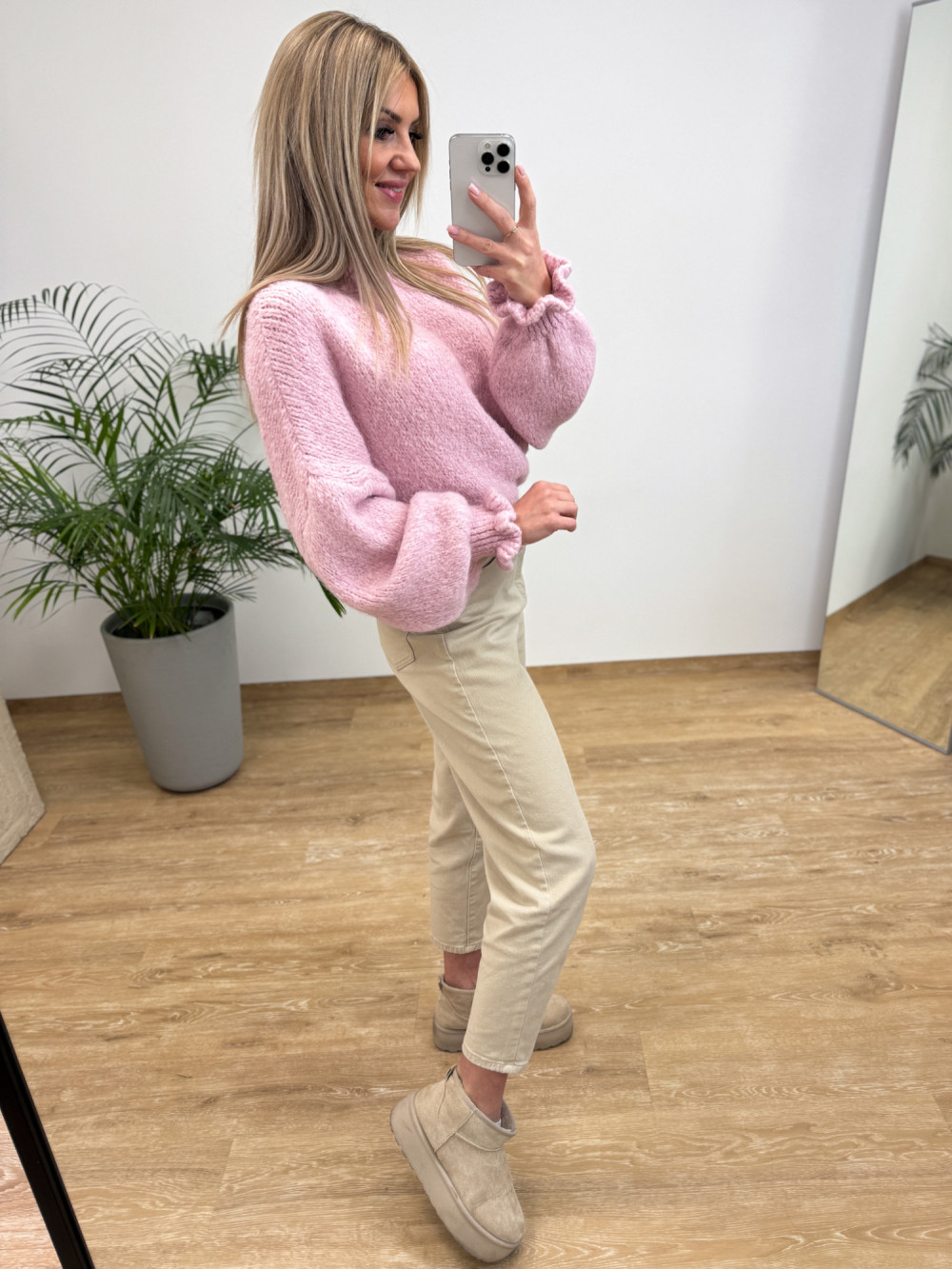️ Gumka u dołu – sweter ładnie układa się na sylwetce
