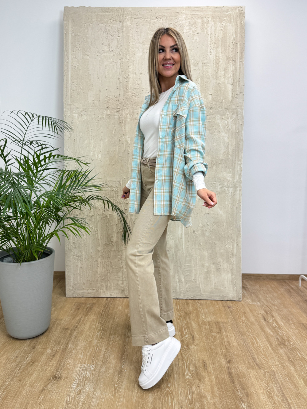 Wzór w kratę w pastelowych odcieniach nadaje jej wyjątkowego charakteru – dostępnych jest kilka wersji kolorystycznych, które idealnie wpisują się w sezonowe trendy. Świetnie komponuje się zarówno z jeansami i trampkami, jak i z elegancką spódnicą czy botkami.