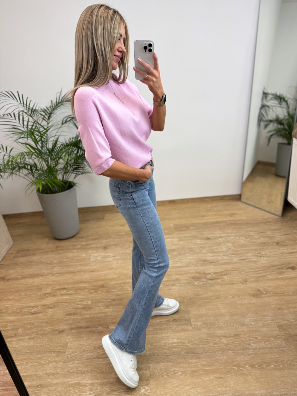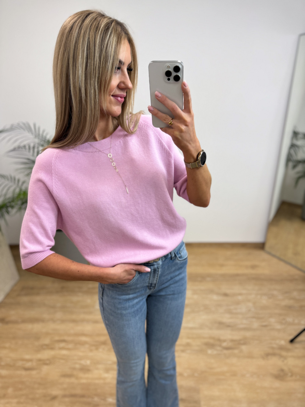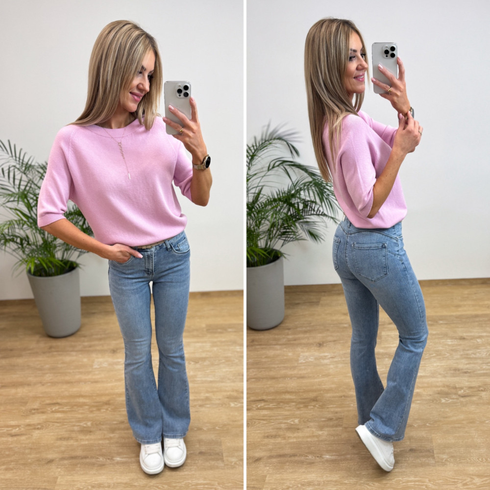 Sweterek Wiskozowy z Krótszym Rękawem Limbo - Pudrowy
