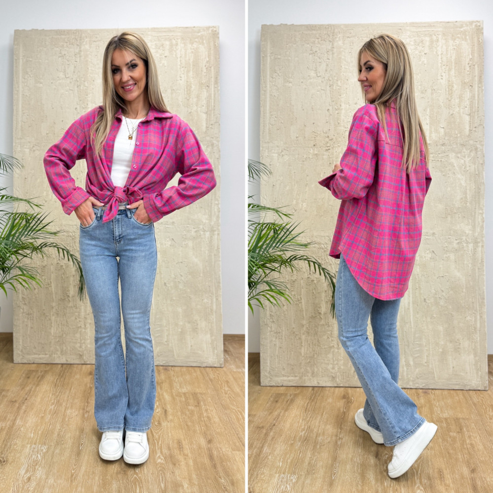 Koszula Flanelowa w Kratę Torino -Fuksja z Niebieskim
