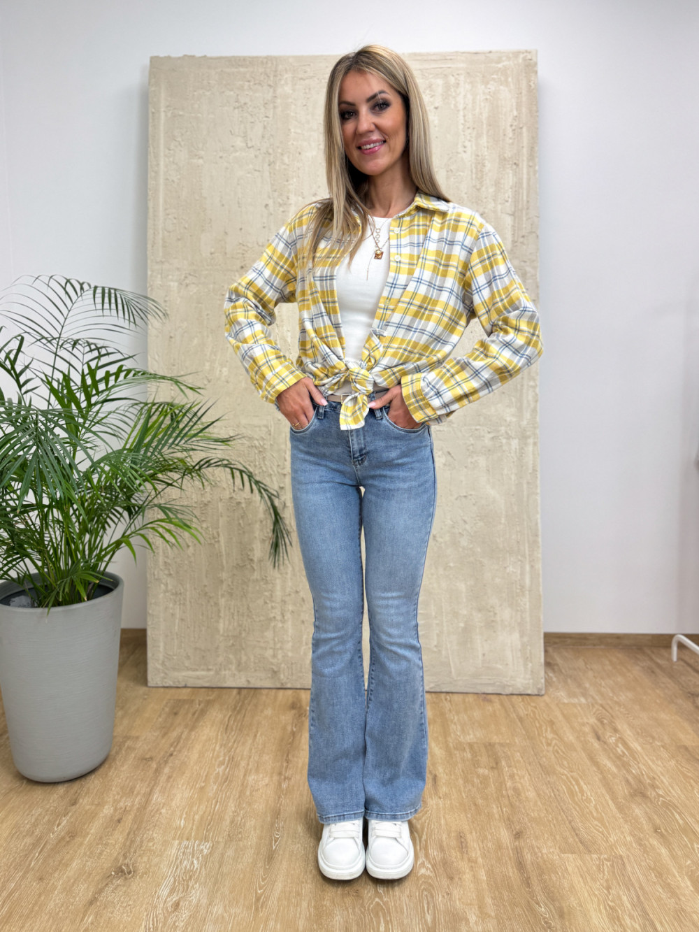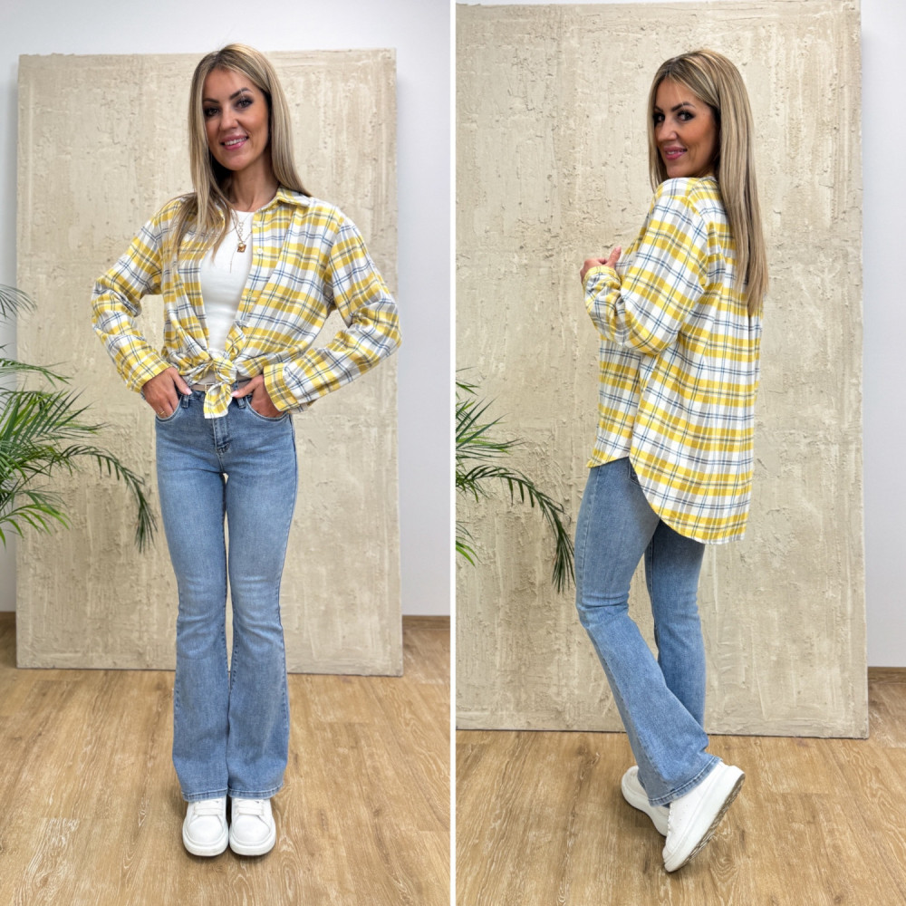 Koszula Flanelowa w Kratę Torino - Żółta Biały z Niebieskim