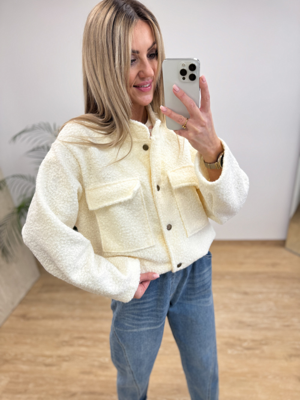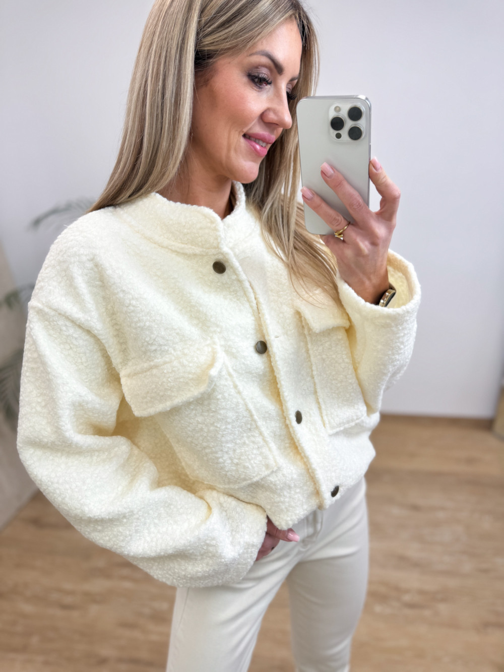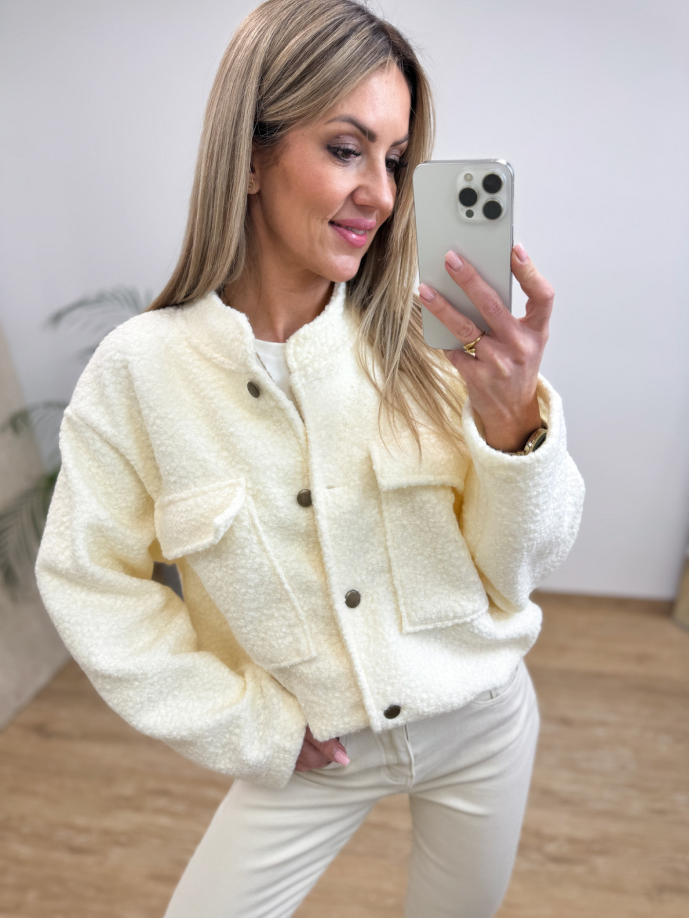 Kurtka Bomberka z Bukli na Guziki Galino - Waniliowa