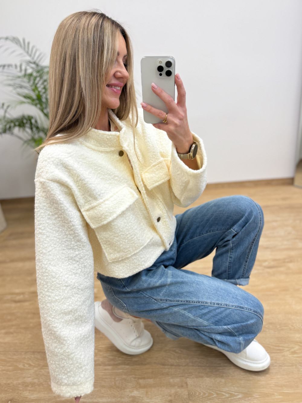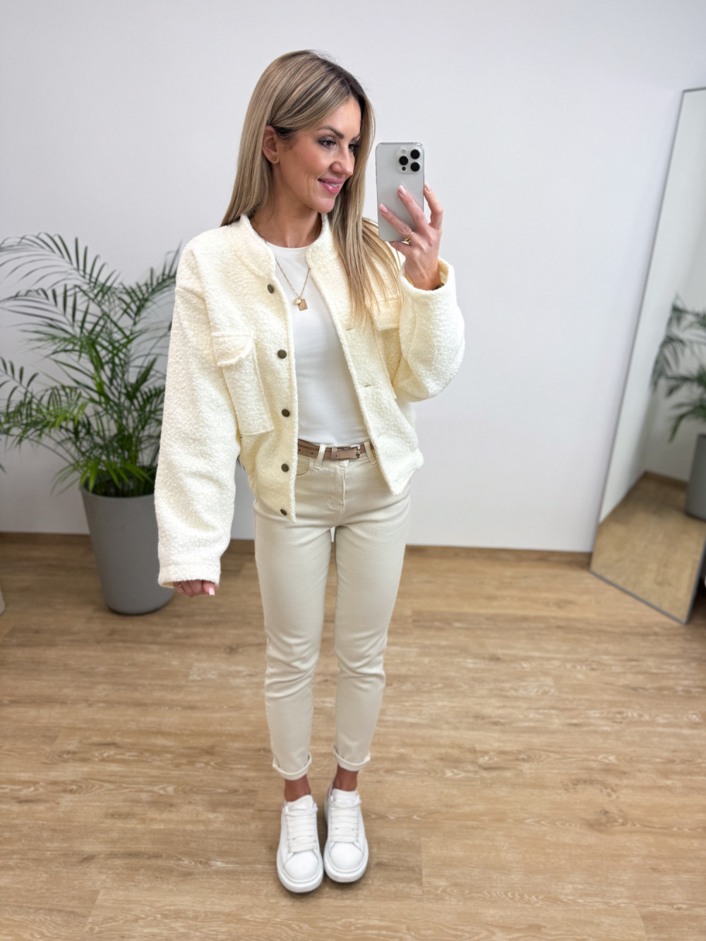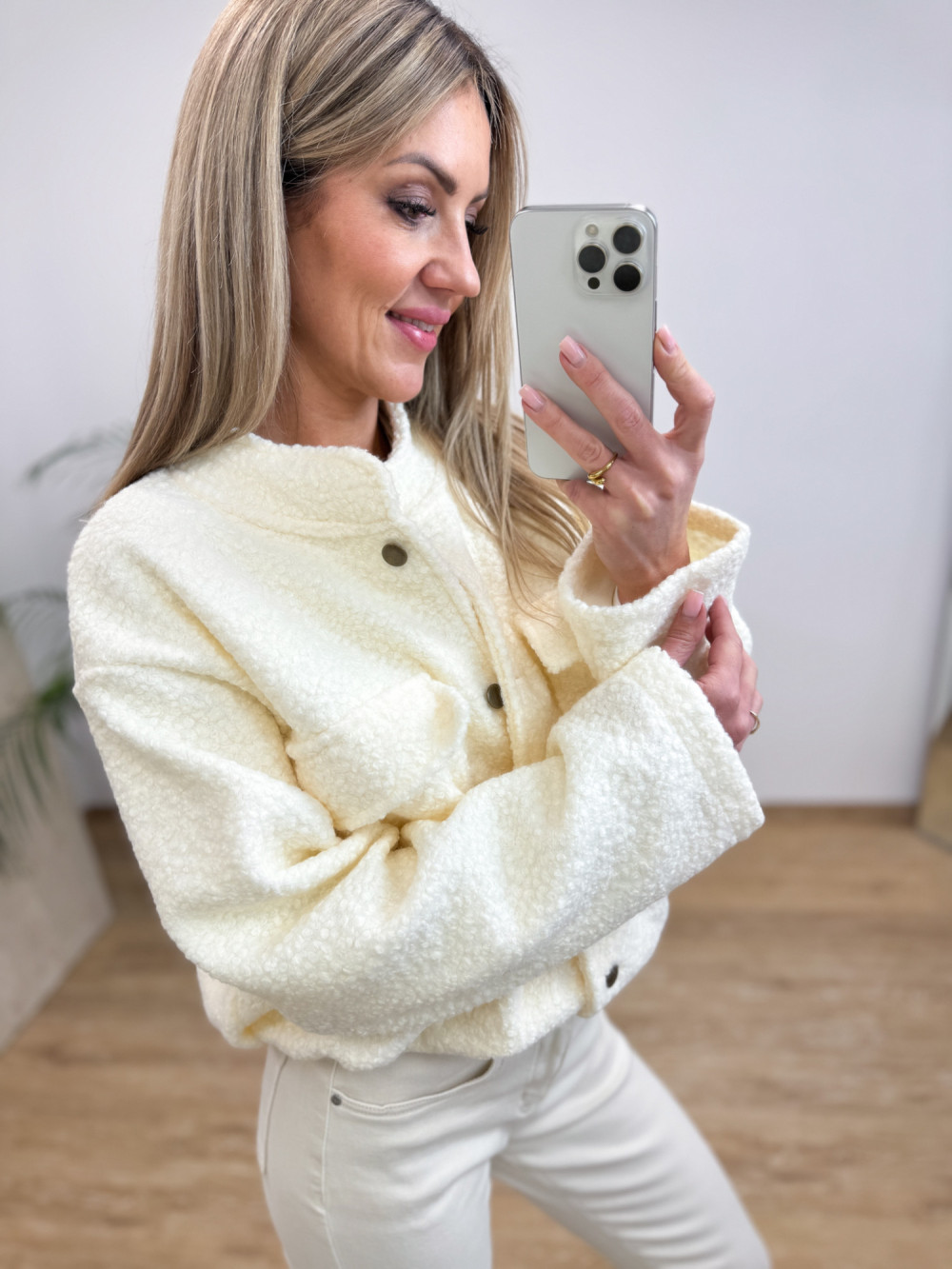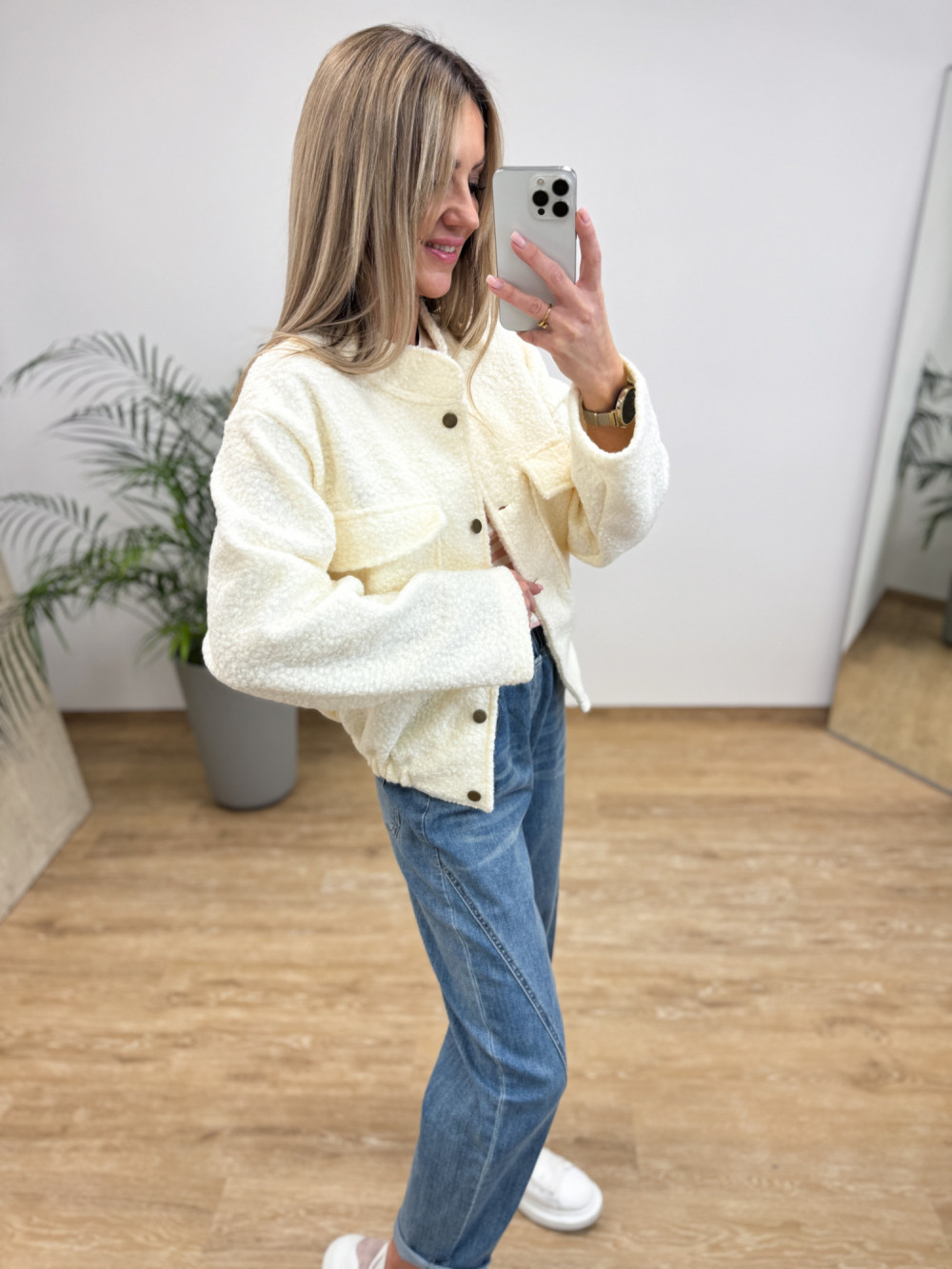 Kurtka Bomberka z Bukli na Guziki Galino - Waniliowa