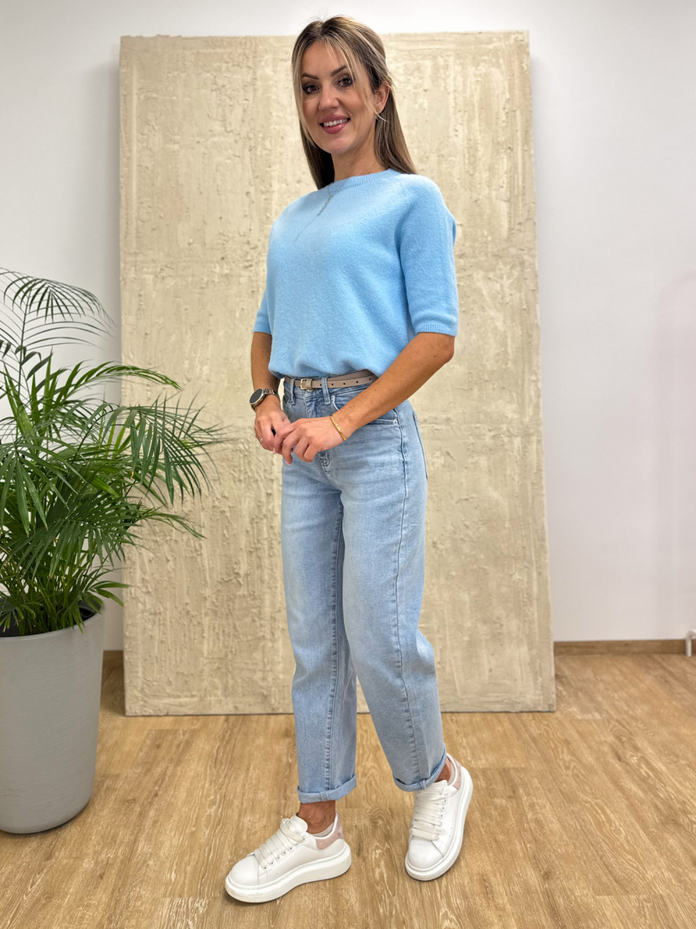 Sweter Krótki Rękaw Baby Alpaka Noami - Błękit