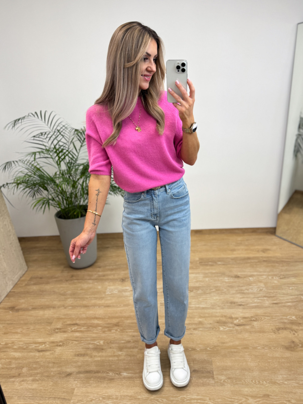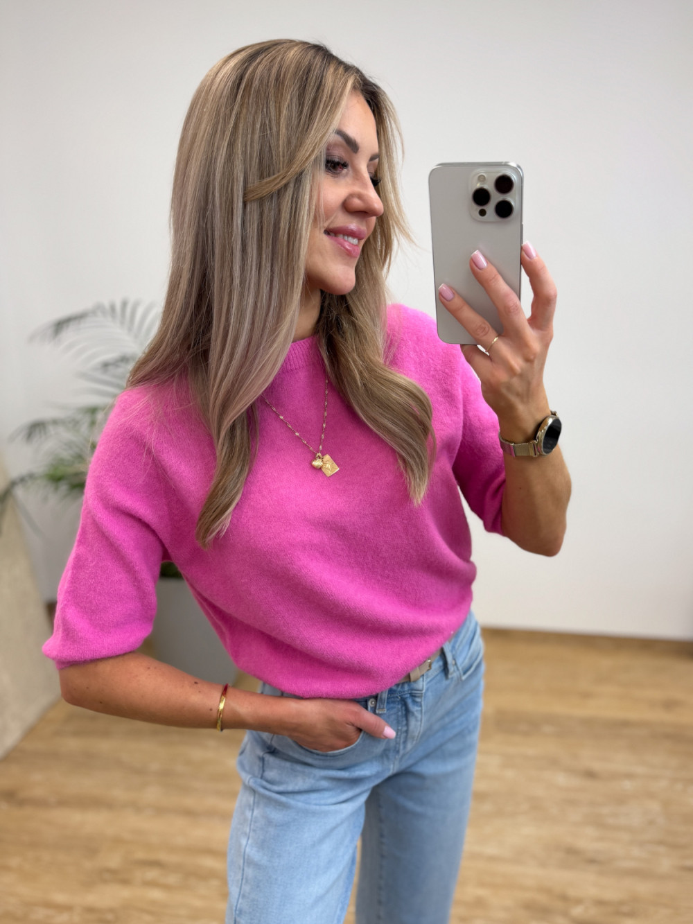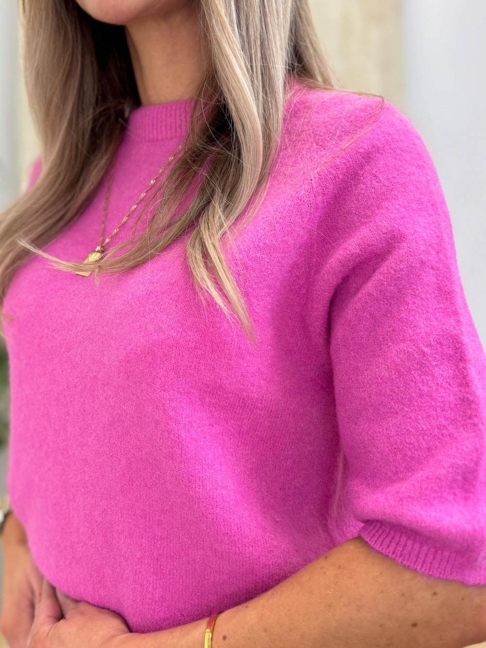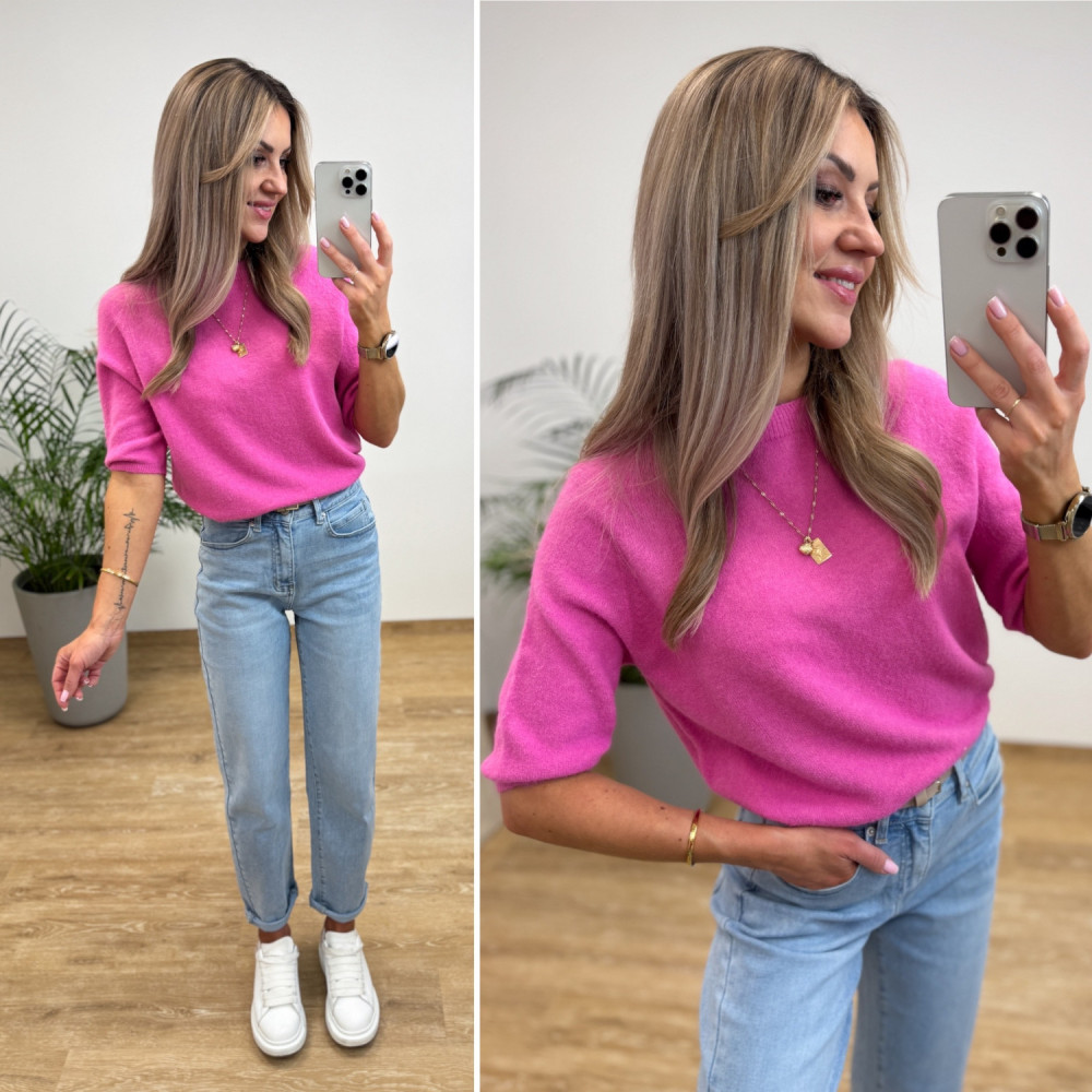Sweter Krótki Rękaw Baby Alpaka Noami - Fuksja