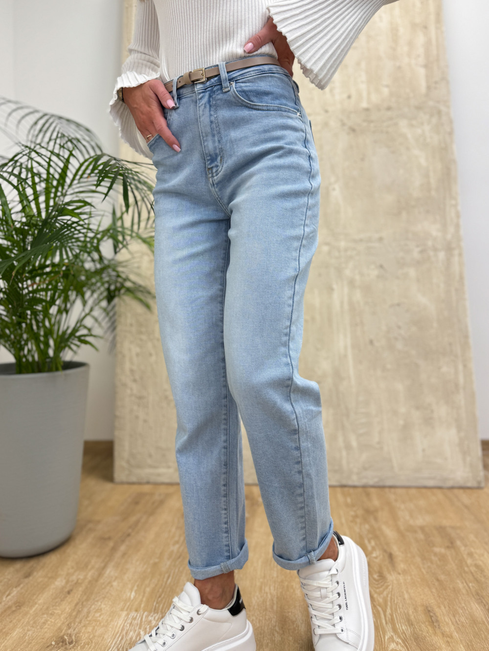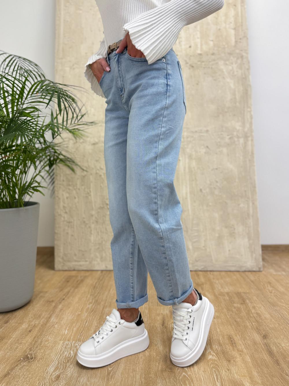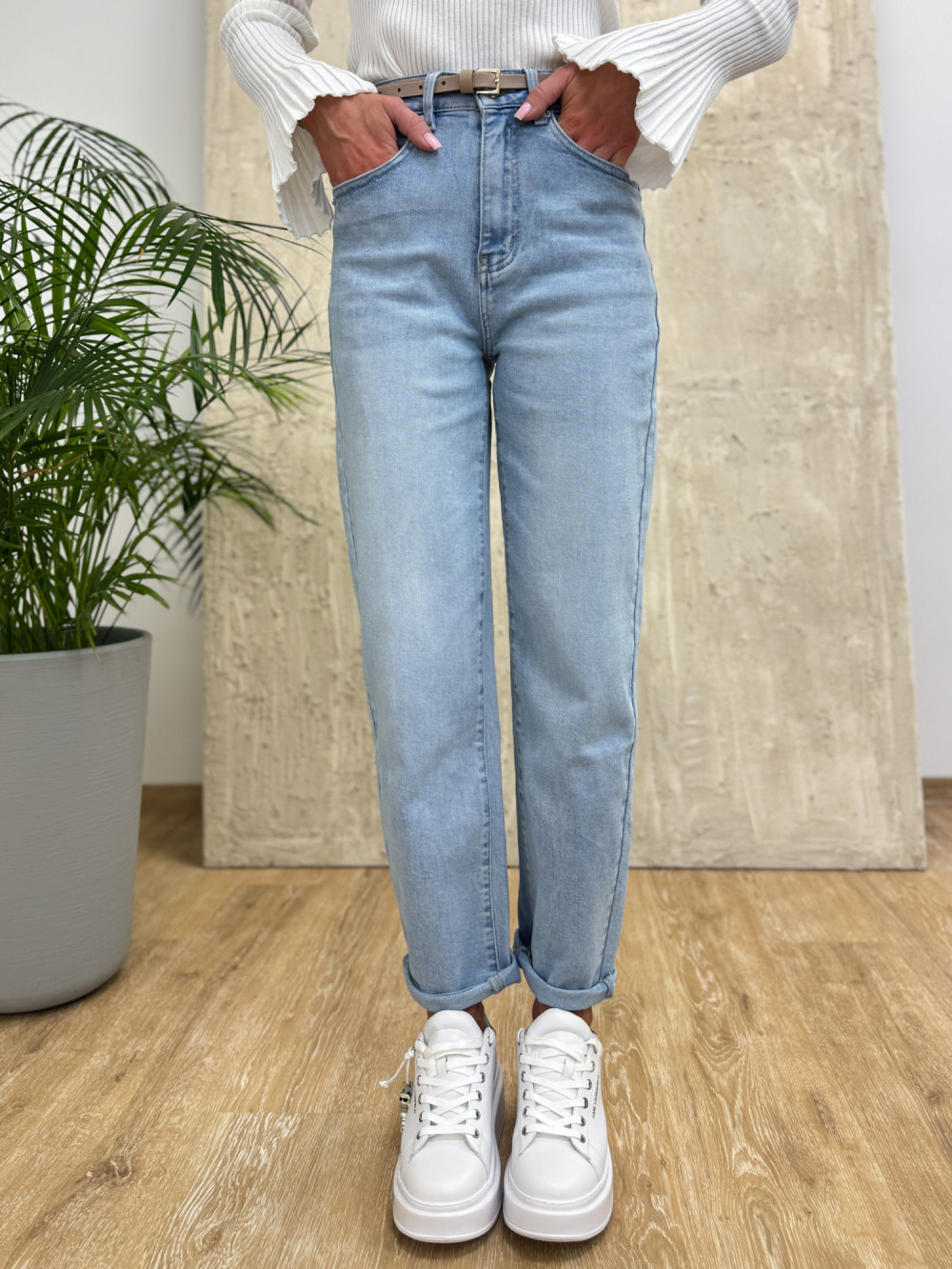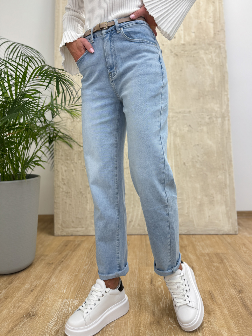 Spodnie Jeansy Mom Fit mod. 307 - Błękitne