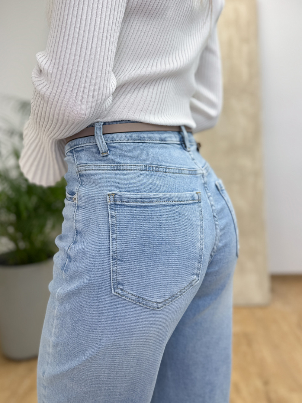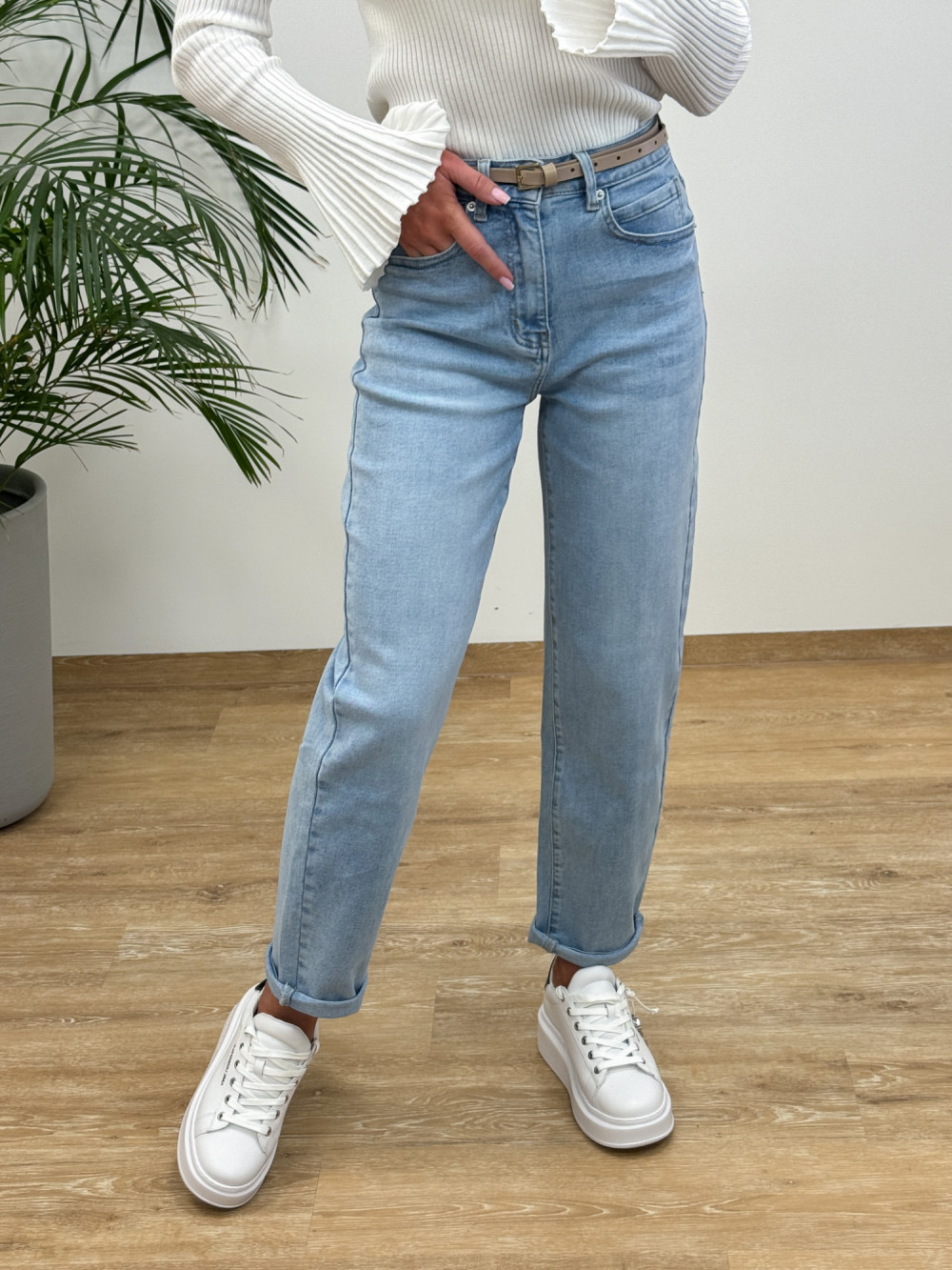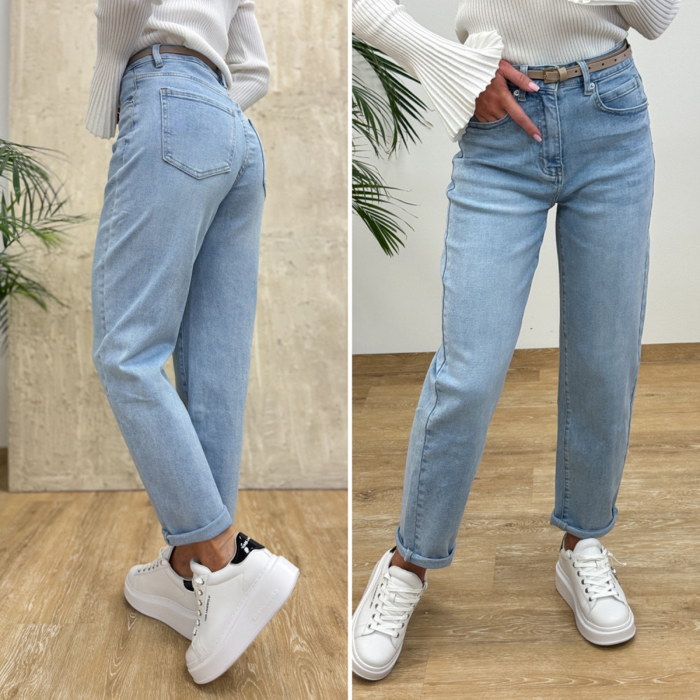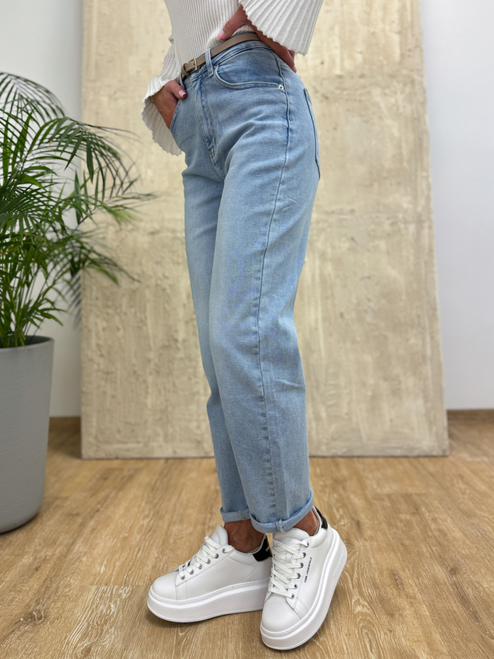 Spodnie Jeansy Mom Fit mod. 307 - Błękitne