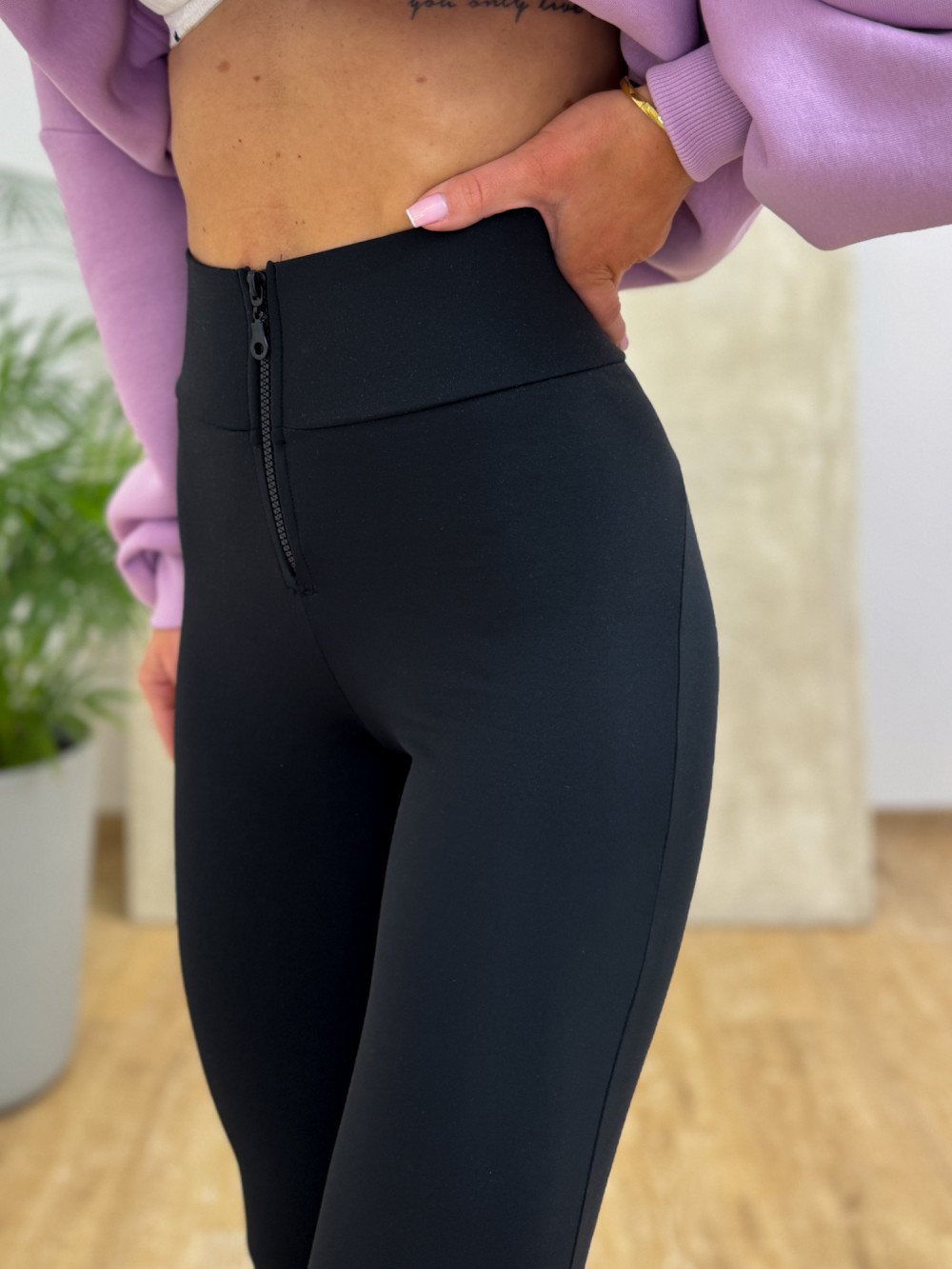 - Elastycznych legginsów o wyższym stanie na szerokiej gumie, z zapięciem na zamek - które idealnie dopasowują się do sylwetki i gwarantują komfort noszenia. Posiadają przeszycia, dzięki którym rewelacyjnie modelują sylwetkę.