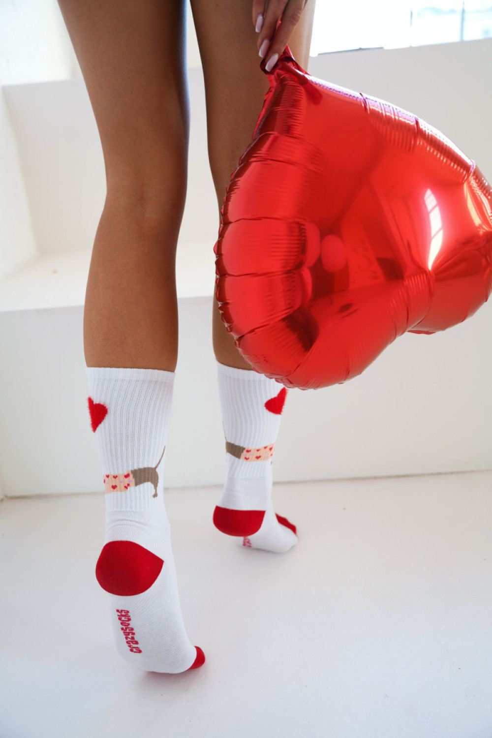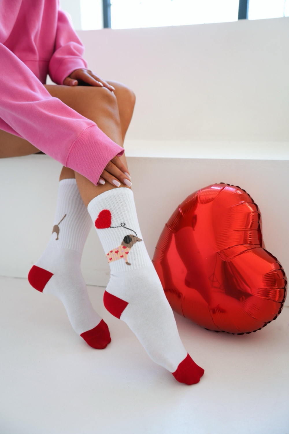 Skarpetki Przedłużane Jamnik z balonem - Białe