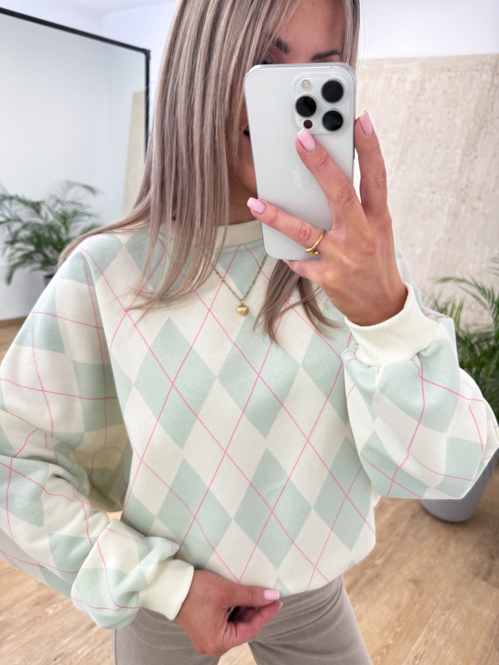 Bluza Bawełniana w Romby - Wanilia z Miętą