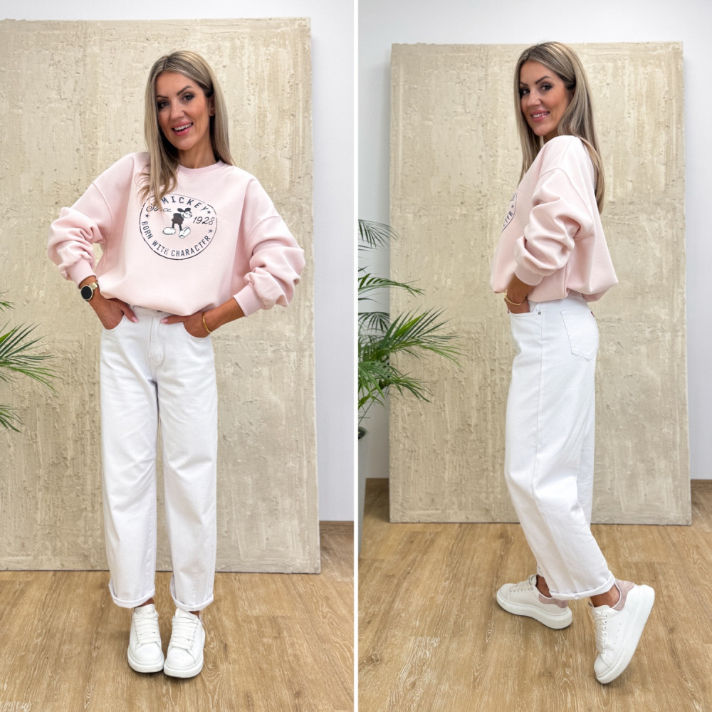 Bluza Bawełniana Oversizowa Mickey - Pudrowa