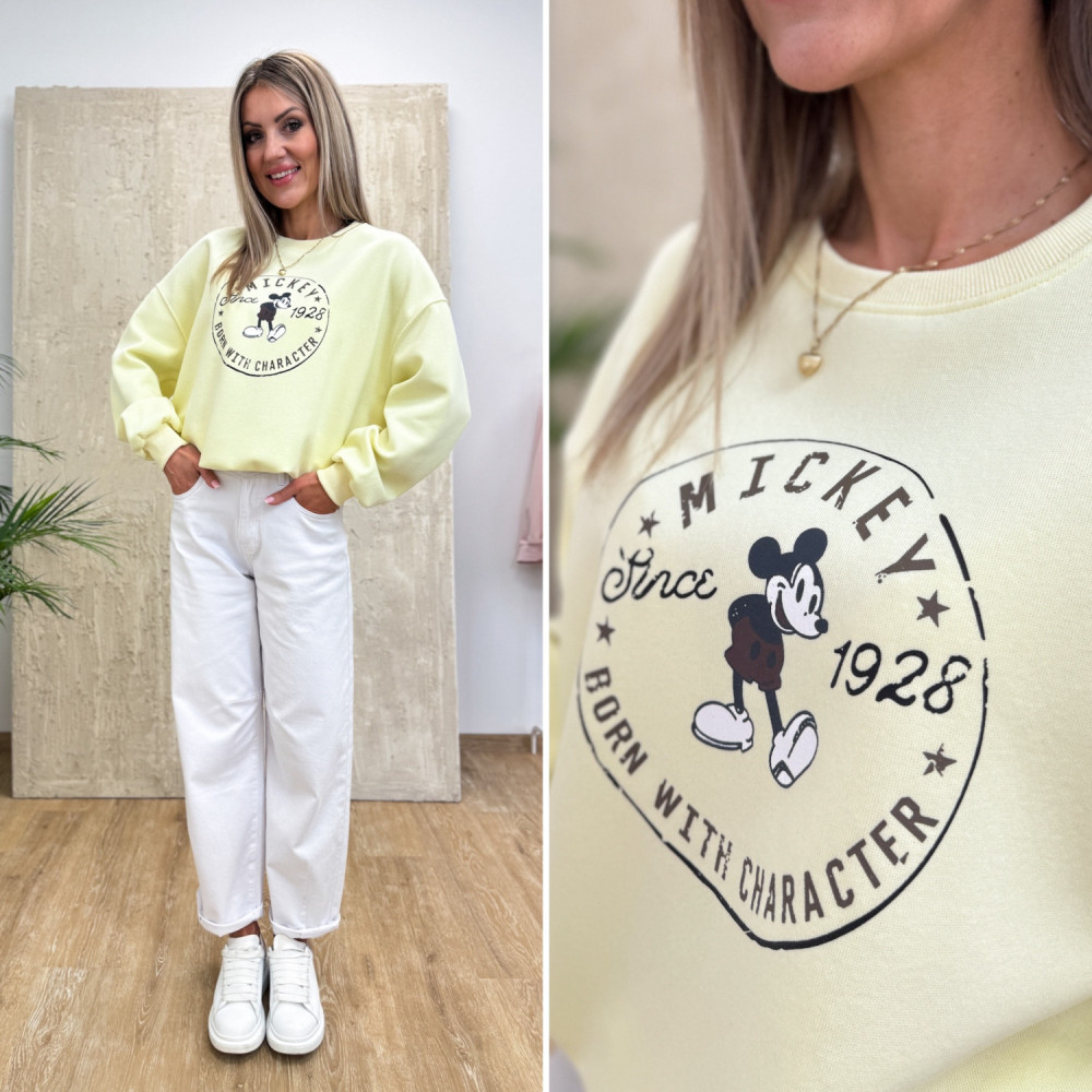 Bluza Bawełniana Oversizowa Mickey - Żółta