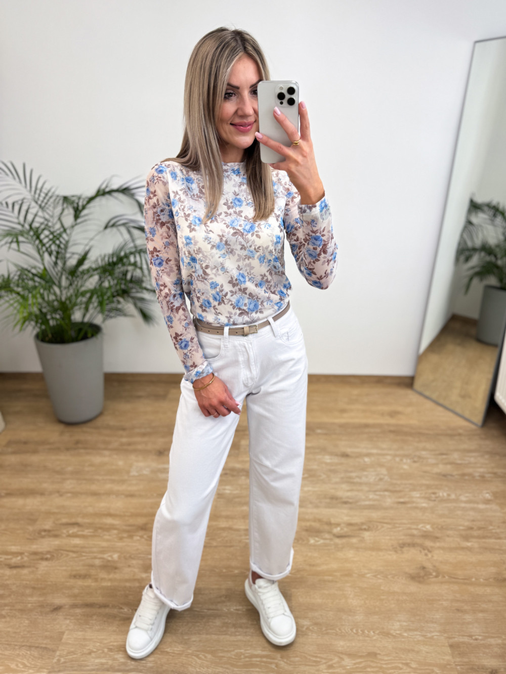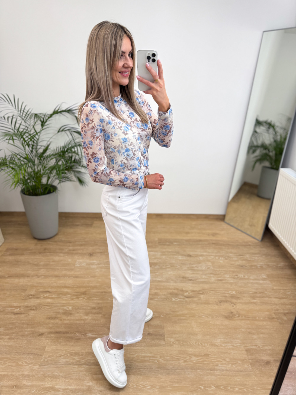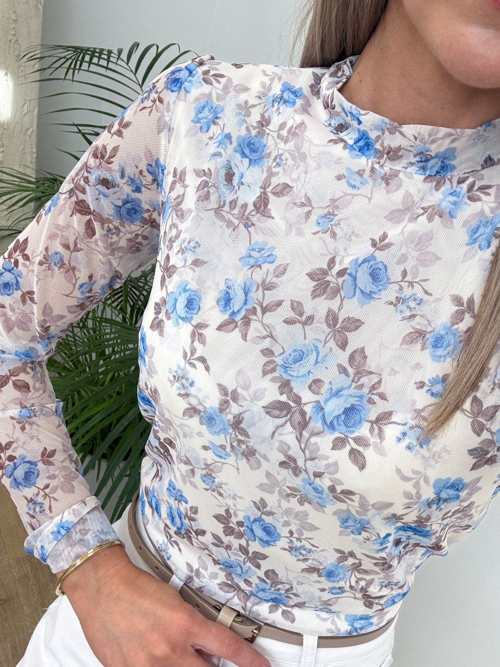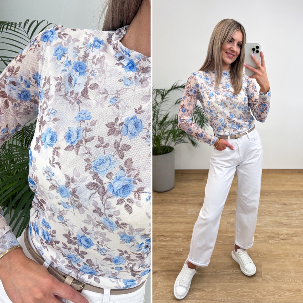 Bluzka z Siateczki w Kwiaty Kori - Waniliowa z Niebieskim