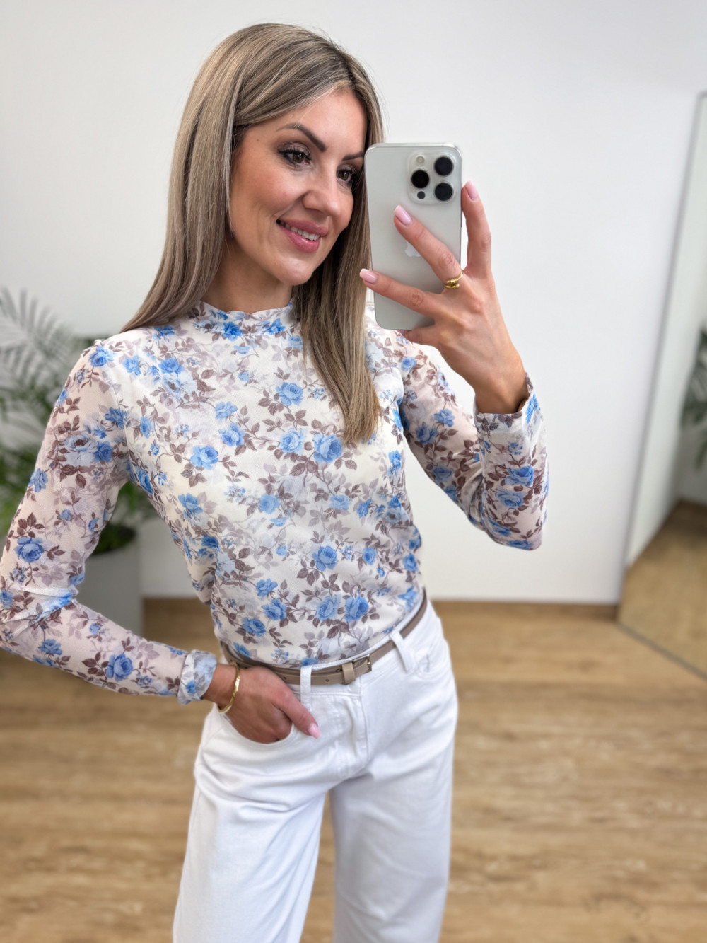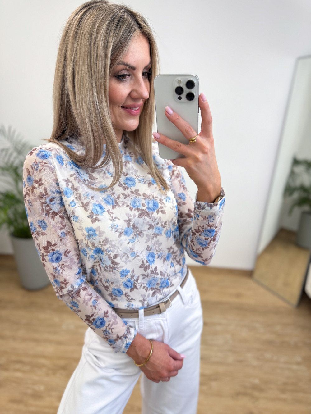 Lekka jak mgiełka, a przy tym niezwykle kobieca – ta bluzeczka uszyta z delikatnej, miękkiej tkaniny siateczkowej to propozycja dla miłośniczek subtelnych stylizacji.