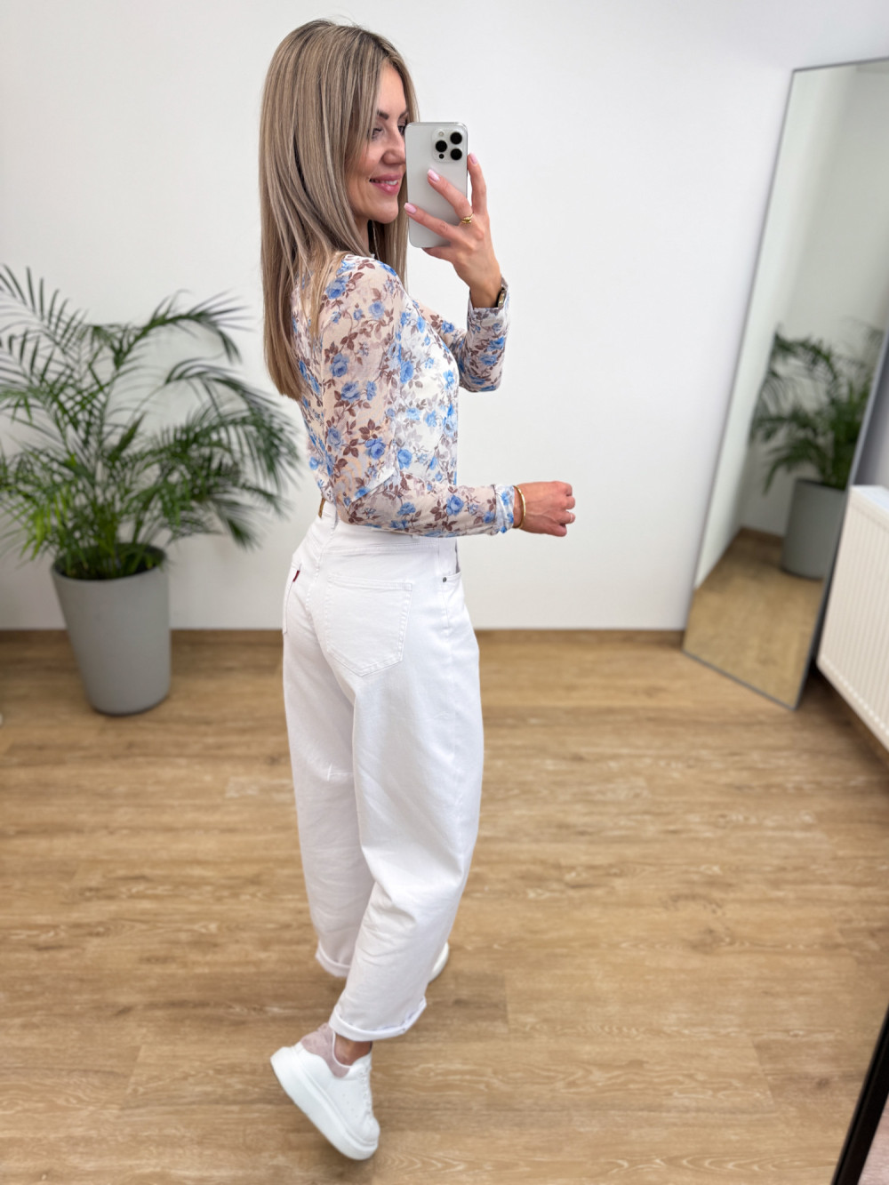 Utrzymana w delikatnych, stonowanych kolorach – świetnie komponuje się z jasnymi spodniami, spódnicą czy jeansami.