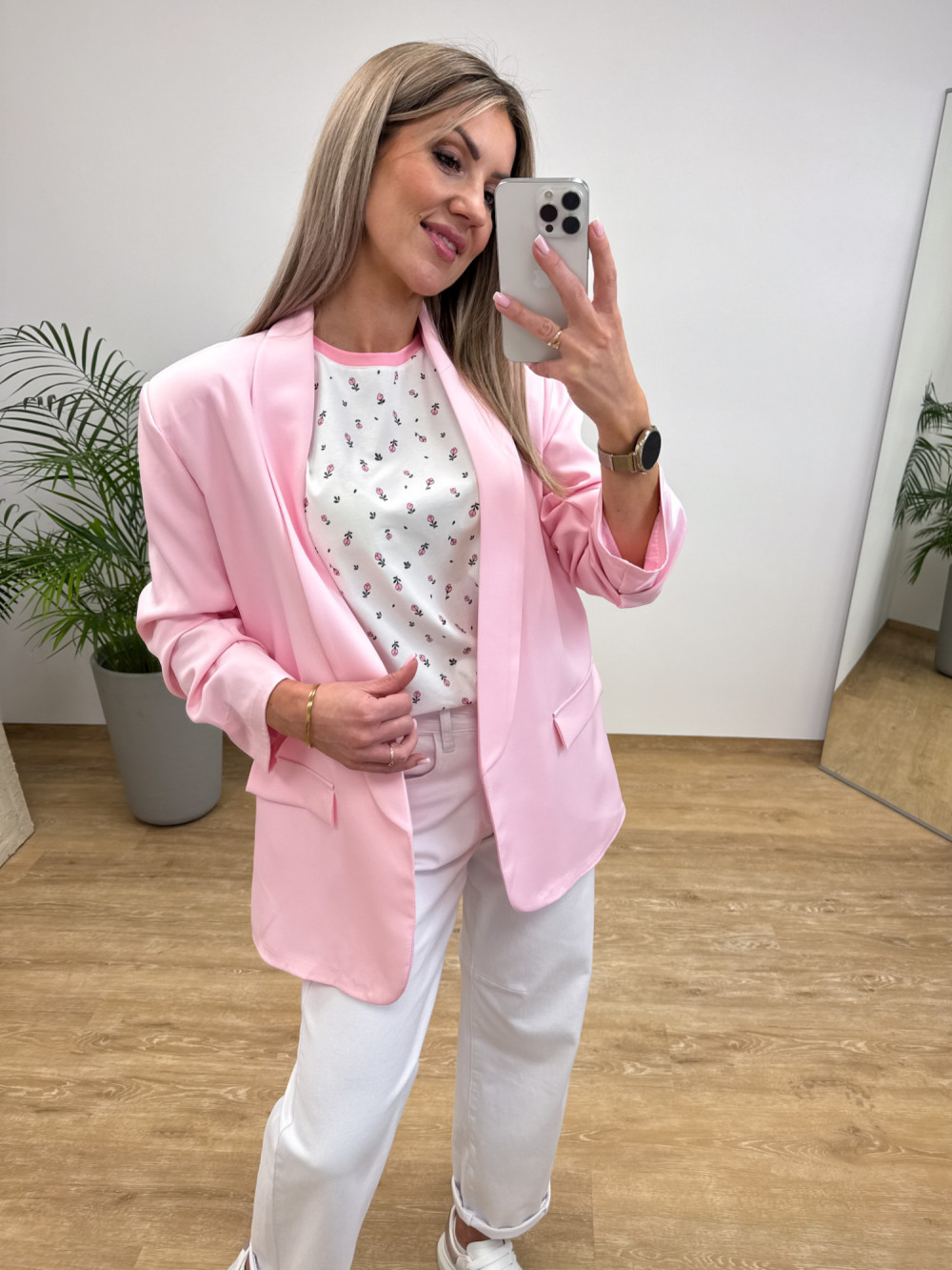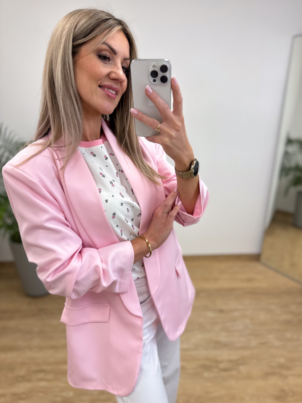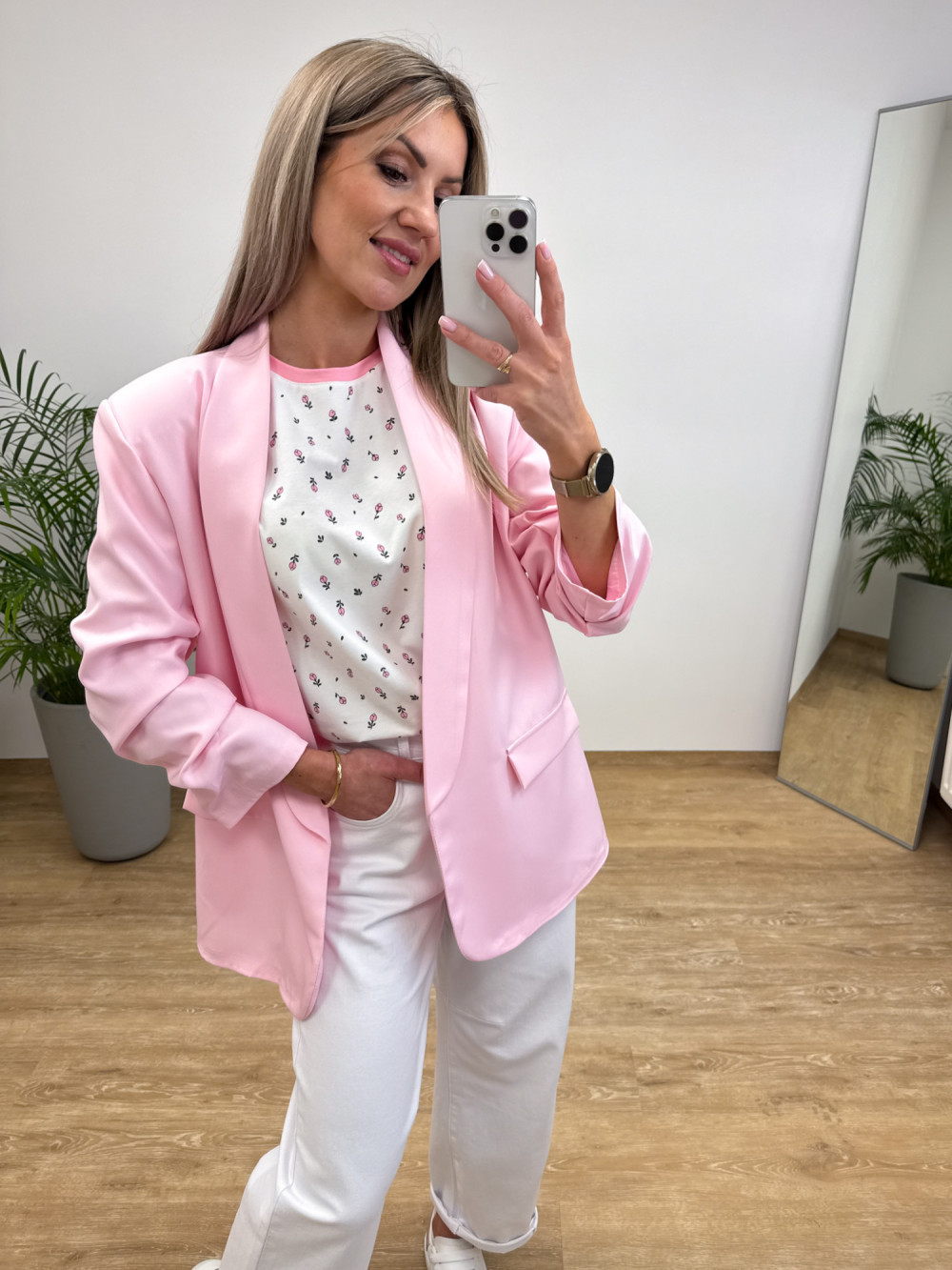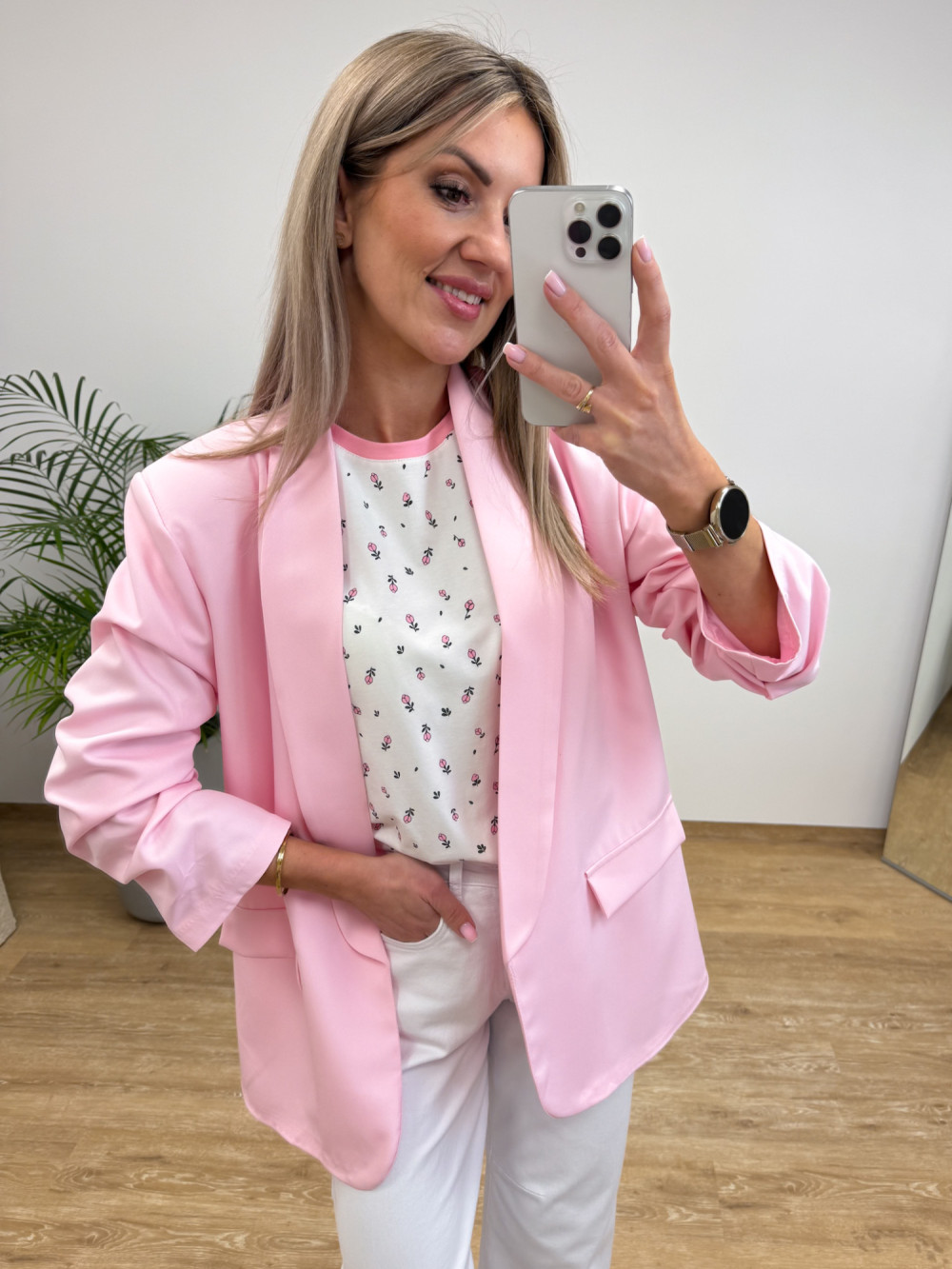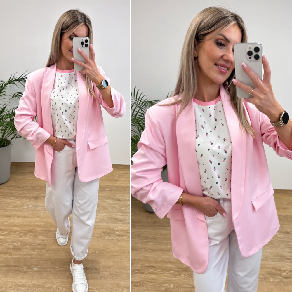 Marynarka z Drapowany Rękawem Classe - Różowa