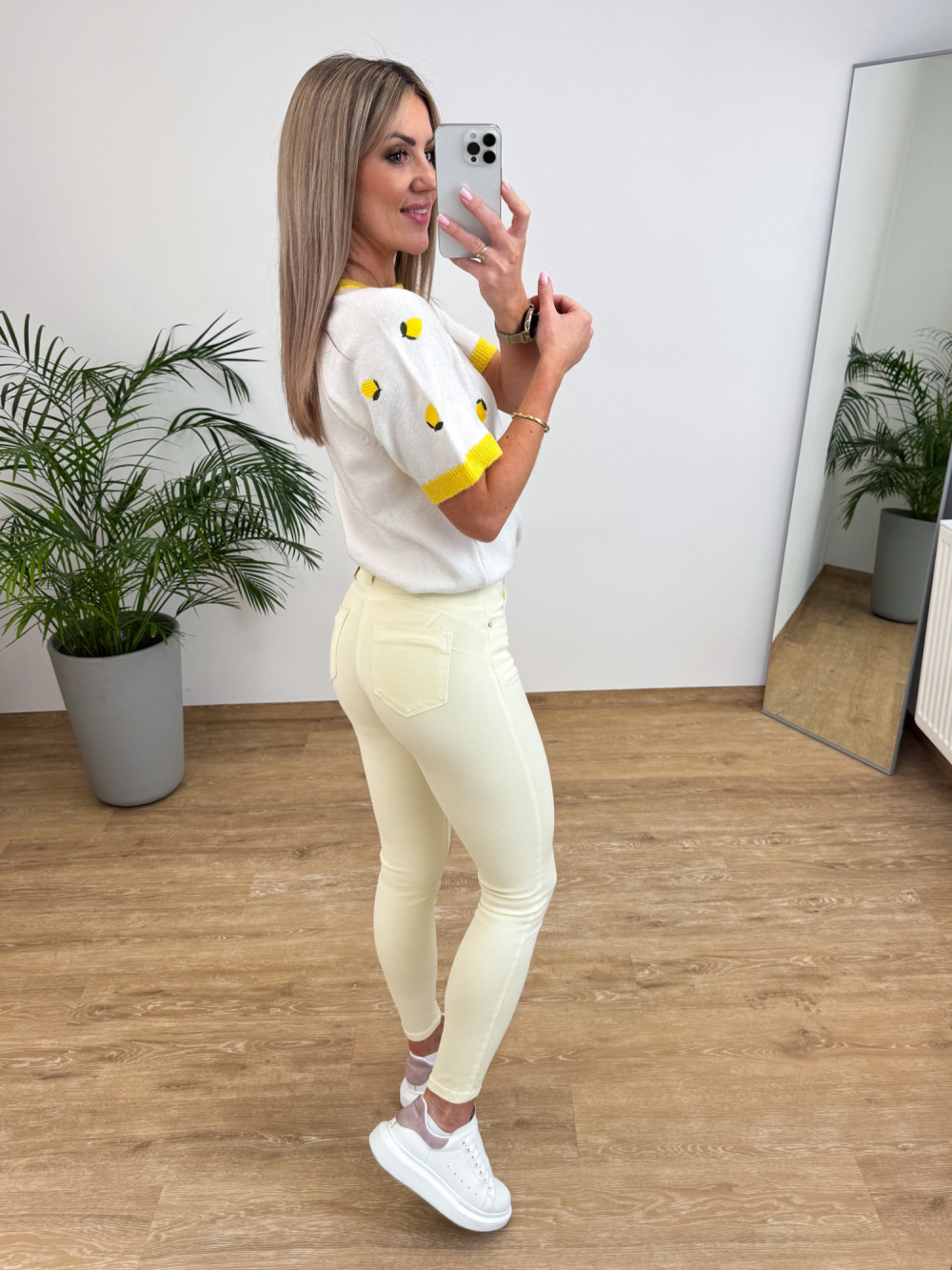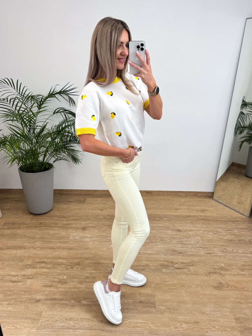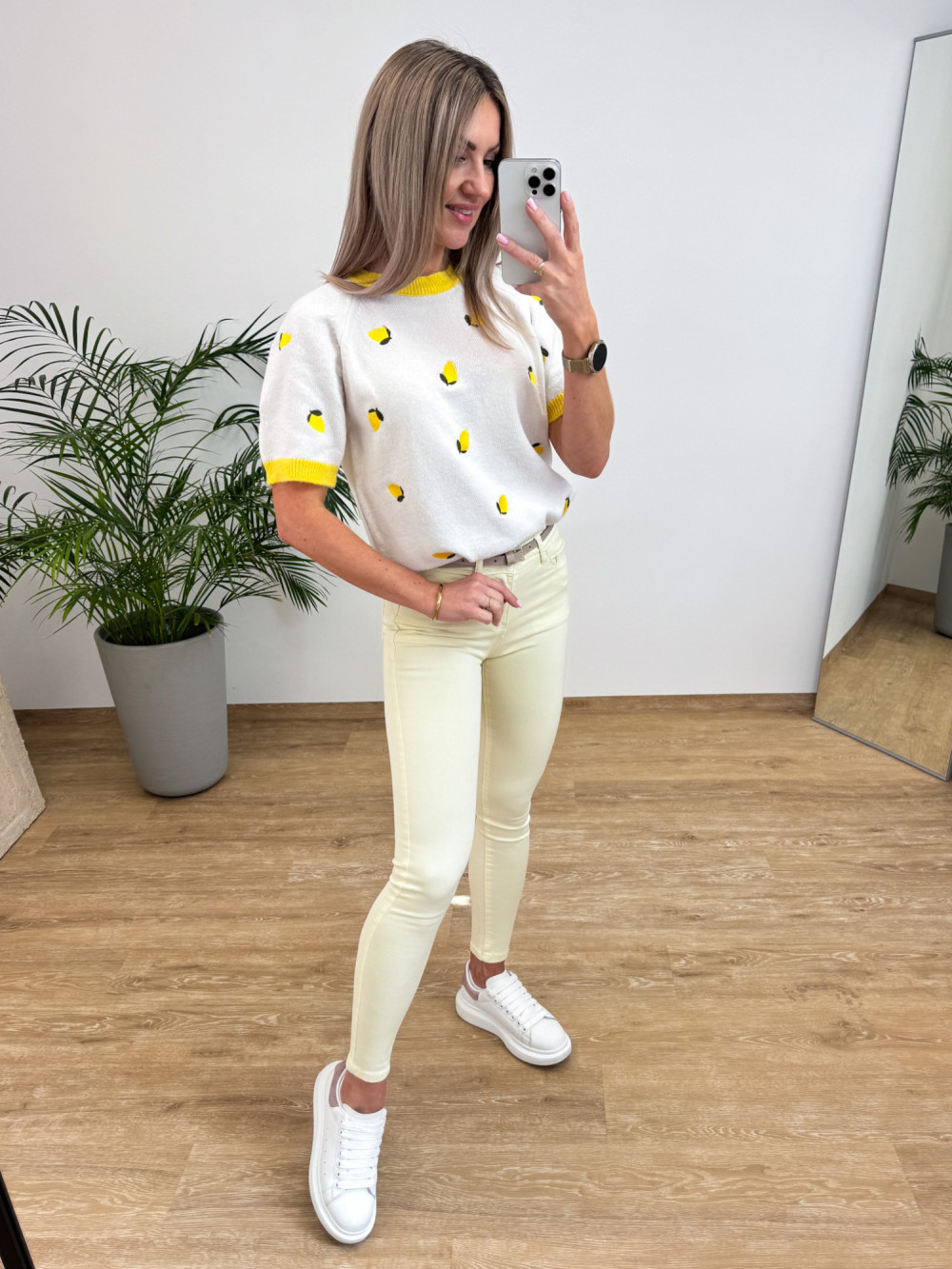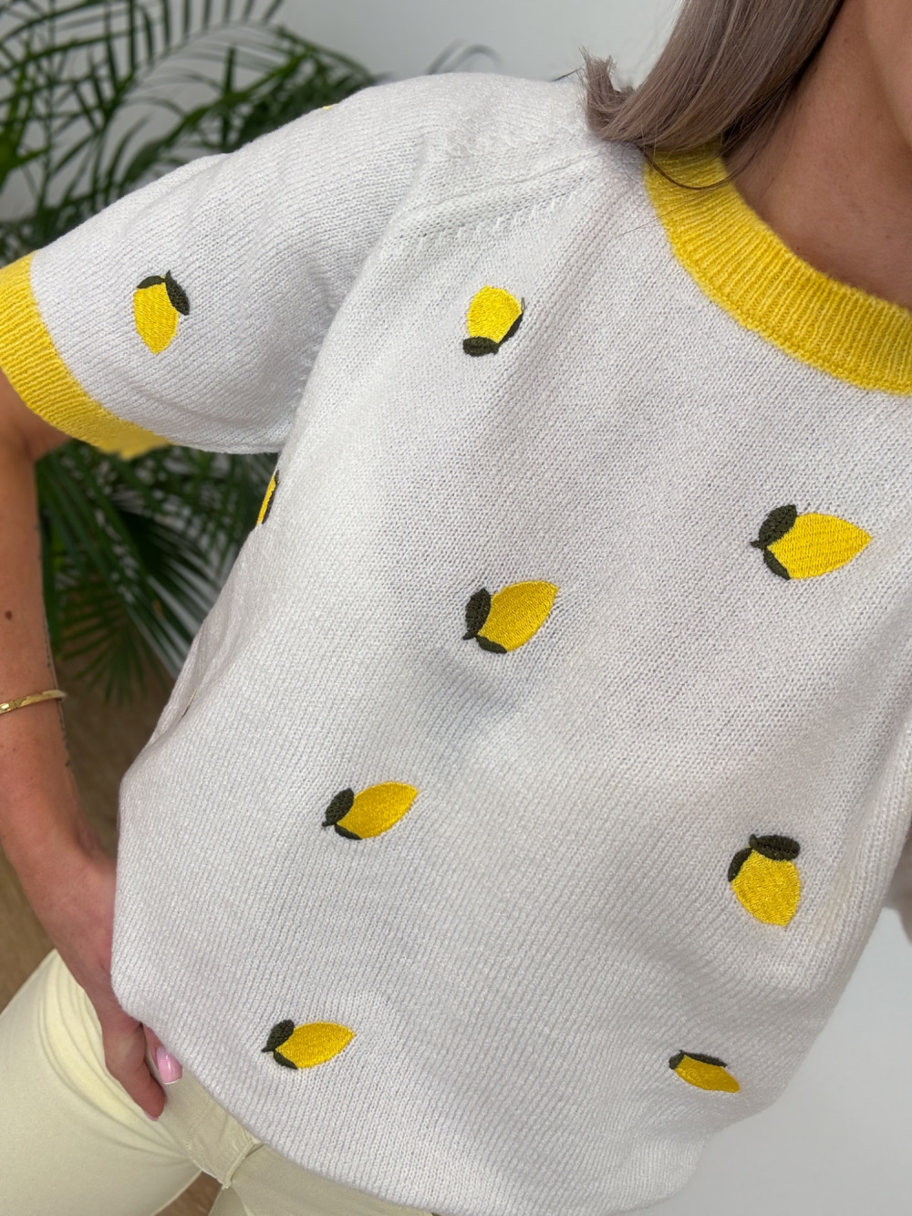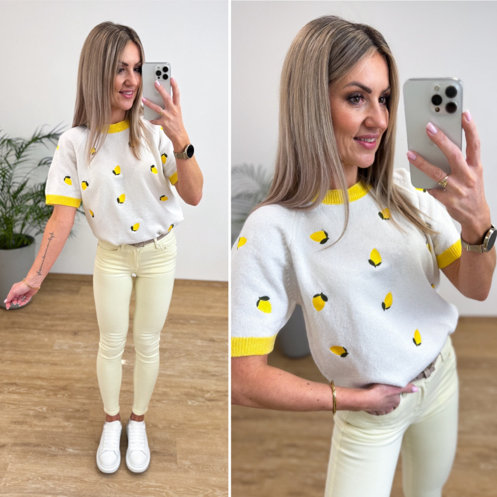 Sweterek z Krótszym Rękawem w Cytrynki Citron - Biały